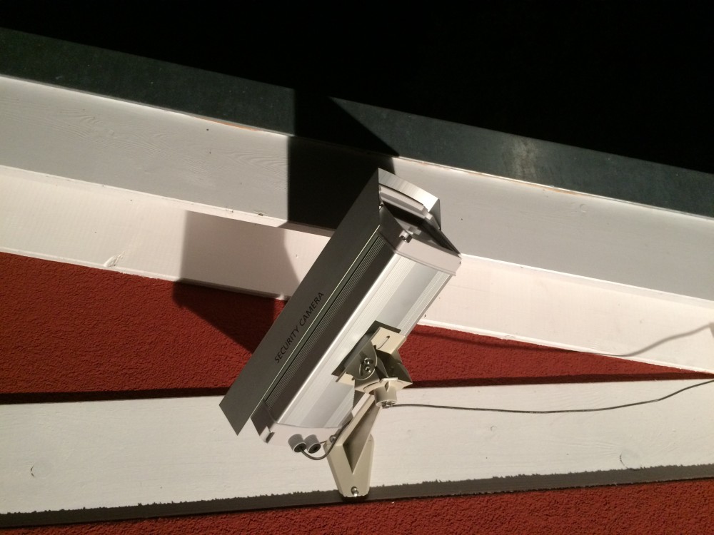 Für die Webcam kommt die Raspberry Pi Camera v2.1 in Verbindung mit einem Raspberry Pi Model B zum Einsatz. Es besitzt eine Auflösung von maximal 8 MP, bildet im 4:3-Verhätlnis ab und hat ein Vollformat-Brennweitenäquivalent von ca. 29 mm. Im manuellen Belichtungsmodus können maximal 10.0 s Belichtungszeit und ISO 800 gewählt werden. Untergebracht ist die Kamera in einem Außengehäuse einer günstigen Überwachsungskameraatrappe, wie sie bei Ebay, Amazon etc. erhältlich sind. Zwar hält diese nicht 100% dicht, da aber die Raspberry-Platine auf einer erhöhten Montageplatte befestigt ist, kann im Gehäuseboden angesammeltes Wasser nicht gefährlich werden. Über einen WLAN-Stick ist der Pi mit dem Internet und Heimnetzwerk verbunden.