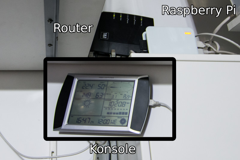 Auf dem Pi war außerdem die mittlerweile nicht mehr weiterentwickelte Software wview installiert. Diese Software bot neben einem passenden Treiber eine ganze Reihe einfach einzurichtender Funktionen für zahlreiche gängige Wetterstationen. Die gelesenen Daten konnten z.B. live geplottet und auf einen FTP-Server hochgeladen oder die Messwerte korrigiert werden. Außerdem lieferte die Software vorgefertigte html-Seiten und ein 5-minütlich aufgelöstet Archiv mit, das per MySQL ausgelesen werden kann.